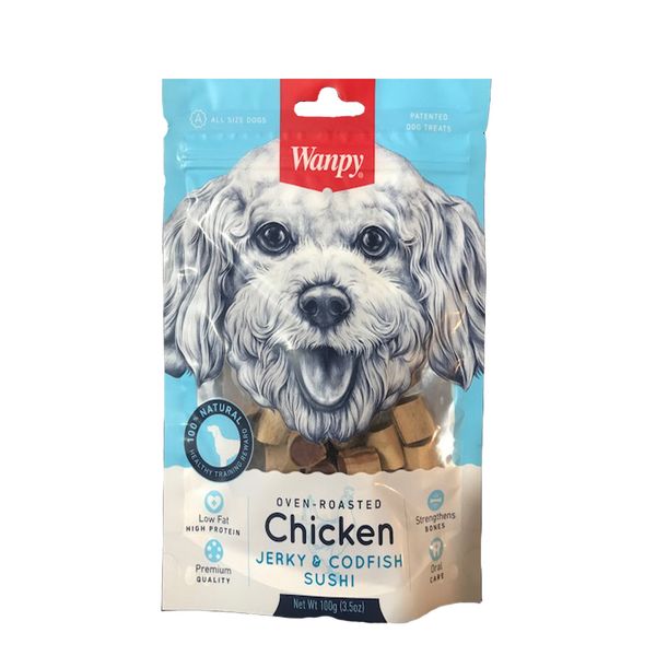 غذای تشویقی سگ ونپی مدل chicken & codfish sushi وزن 100 گرم